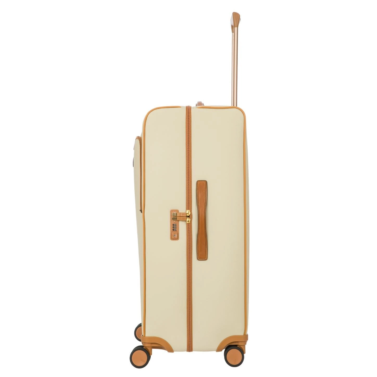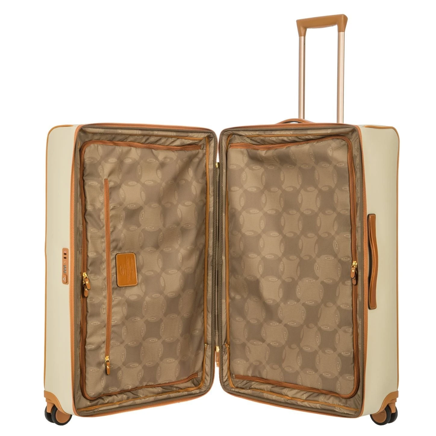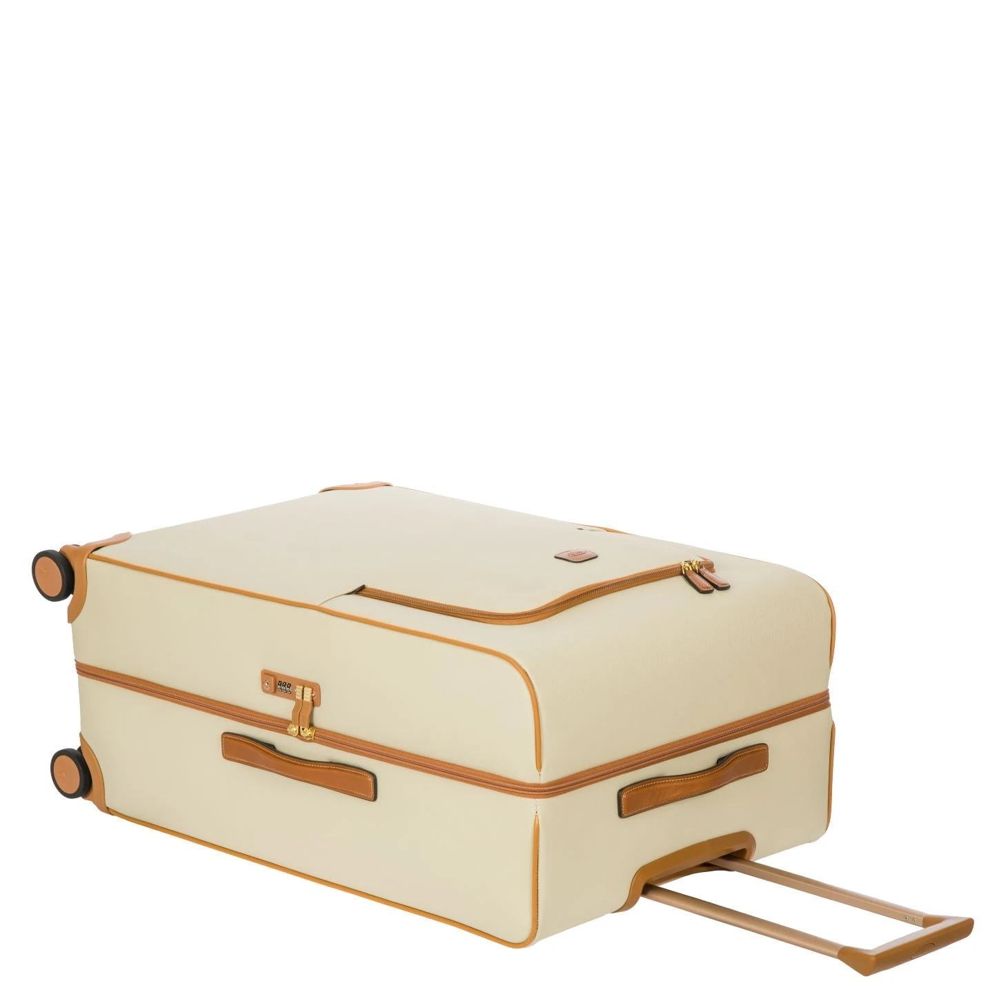 30 inch ultra-lightweight carry-on trolley from Bric’s FIRENZE collection. A unique style with a retro twist available in the elegant cream color.. Made from embossed synthetic material that is both durable and easy to clean. The vegetable tanned Tuscan leather finishes take on an aged look over time, making every trolley unique and personal.